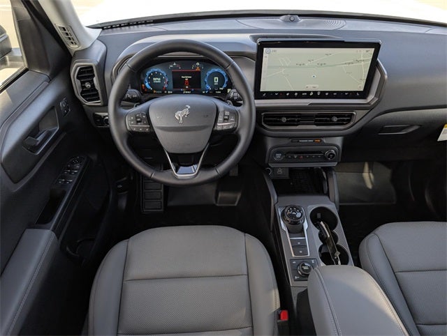 Oxford White 2025 Ford Bronco Sport Badlands 4WD 8-Speed Automatic EcoBoost 2.0L I4 GTDi DOHC Turbocharged VCT 4-Wheel Disc Brakes, 6 Speakers, ABS brakes, Air Conditioning, Alloy wheels, AM/FM radio: SiriusXM, AM/FM Stereo, Auto High-beam Headlights, Auto-dimming Rear-View mirror, Automatic temperature control, Brake assist, Compass, Delay-off headlights, Driver door bin, Driver vanity mirror, Dual front impact airbags, Dual front side impact airbags, Electronic Stability Control, Emergency communication system: SYNC 4 911 Assist, Four wheel independent suspension, Front anti-roll bar, Front Bucket Seats, Front Center Armrest, Front fog lights, Front reading lights, Fully automatic headlights, Garage door transmitter, Heated door mirrors, Heated front seats, Heated steering wheel, Illuminated entry, Knee airbag, Leather Trimmed Front Bucket Seats, Low tire pressure warning, Memory seat, Occupant sensing airbag, Outside temperature display, Overhead airbag, Overhead console, Panic alarm, Passenger door bin, Passenger vanity mirror, Power door mirrors, Power driver seat, Power passenger seat, Power steering, Power windows, Radio data system, Rear anti-roll bar, Rear reading lights, Rear seat center armrest, Rear window defroster, Rear window wiper, Remote keyless entry, Security system, SiriusXM, Speed control, Speed-sensing steering, Speed-Sensitive Wipers, Split folding rear seat, Steering wheel mounted audio controls, SYNC 4 w/Enhanced Voice Recognition, Tachometer, Telescoping steering wheel, Tilt steering wheel, Traction control, Trip computer, Variably intermittent wipers, and Wheels: 17 Matte Black-Painted Aluminum.