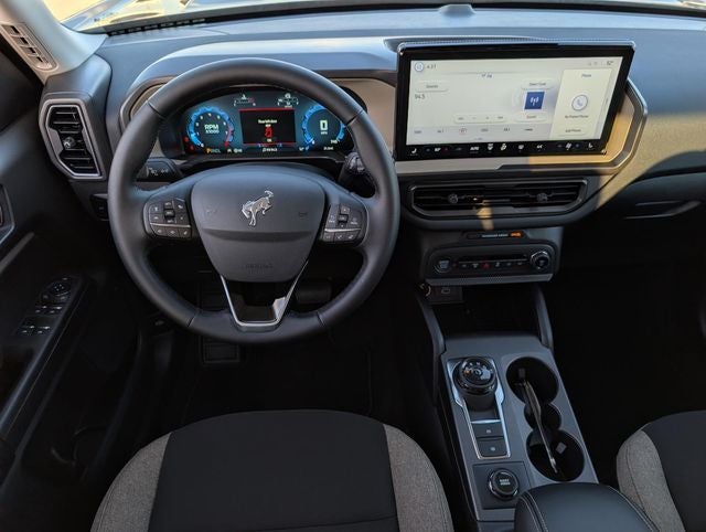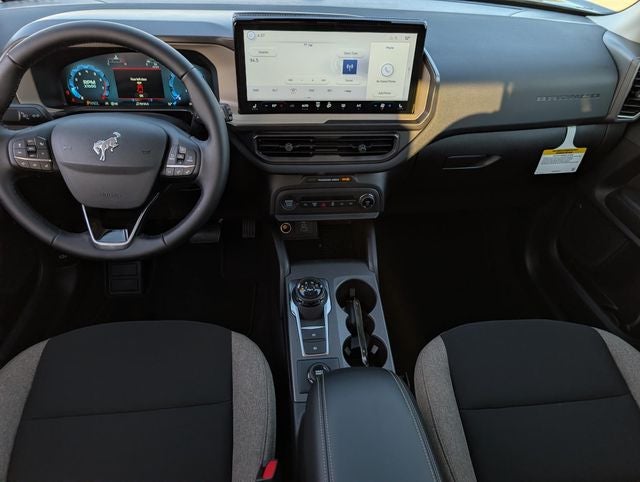 Shadow Black 2025 Ford Bronco Sport Big Bend 4WD 8-Speed Automatic 1.5L EcoBoost Convenience Package (Front Driver/Passenger Seat Back Map Pockets, Heated 8-Way Power Driver's Seat, LED Fog Lamps, Premium Wrapped Steering Wheel, and Universal Garage Door Opener (UGDO)), Equipment Group 200A, 4-Wheel Disc Brakes, 6 Speakers, ABS brakes, Air Conditioning, Alloy wheels, AM/FM radio: SiriusXM, AM/FM Stereo, Auto High-beam Headlights, Automatic temperature control, Brake assist, Cloth w/Easy-to-Clean Front Bucket Seats, Compass, Delay-off headlights, Driver door bin, Driver vanity mirror, Dual front impact airbags, Dual front side impact airbags, Electronic Stability Control, Emergency communication system: SYNC 4 911 Assist, Four wheel independent suspension, Front anti-roll bar, Front Bucket Seats, Front Center Armrest, Front License Plate Bracket, Front reading lights, Fully automatic headlights, Heated door mirrors, Illuminated entry, Knee airbag, Low tire pressure warning, Occupant sensing airbag, Outside temperature display, Overhead airbag, Overhead console, Panic alarm, Passenger door bin, Passenger vanity mirror, Power door mirrors, Power steering, Power windows, Radio data system, Rear anti-roll bar, Rear Parking Sensors, Rear reading lights, Rear seat center armrest, Rear window defroster, Rear window wiper, Remote keyless entry, Security system, SiriusXM, Speed control, Speed-sensing steering, Speed-Sensitive Wipers, Split folding rear seat, Steering wheel mounted audio controls, SYNC 4 w/Enhanced Voice Recognition, Tachometer, Telescoping steering wheel, Tilt steering wheel, Traction control, Trip computer, Variably intermittent wipers, and Wheels: 17 Carbonized Gray-Painted Aluminum.