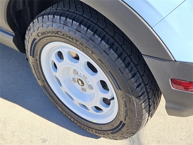 Robins Egg Blue 2025 Ford Bronco Sport Heritage 4WD 8-Speed Automatic 1.5L EcoBoost 4-Wheel Disc Brakes, 6 Speakers, ABS brakes, Air Conditioning, Alloy wheels, AM/FM radio: SiriusXM, AM/FM Stereo, Auto High-beam Headlights, Automatic temperature control, Brake assist, Compass, Delay-off headlights, Driver door bin, Driver vanity mirror, Dual front impact airbags, Dual front side impact airbags, Electronic Stability Control, Emergency communication system: SYNC 4 911 Assist, Four wheel independent suspension, Front anti-roll bar, Front Bucket Seats, Front Center Armrest, Front Driver/Passenger Seat Back Map Pockets, Front reading lights, Fully automatic headlights, Heated door mirrors, Illuminated entry, Knee airbag, Low tire pressure warning, Occupant sensing airbag, Outside temperature display, Overhead airbag, Overhead console, Panic alarm, Passenger door bin, Passenger vanity mirror, Plaid Cloth Front Bucket Seats, Power door mirrors, Power steering, Power windows, Radio data system, Rear anti-roll bar, Rear Parking Sensors, Rear reading lights, Rear seat center armrest, Rear window defroster, Rear window wiper, Remote keyless entry, Security system, SiriusXM, Speed control, Speed-sensing steering, Speed-Sensitive Wipers, Split folding rear seat, Steering wheel mounted audio controls, SYNC 4 w/Enhanced Voice Recognition, Tachometer, Telescoping steering wheel, Tilt steering wheel, Traction control, Trip computer, Variably intermittent wipers, and Wheels: 17 Oxford White-Painted Aluminum.