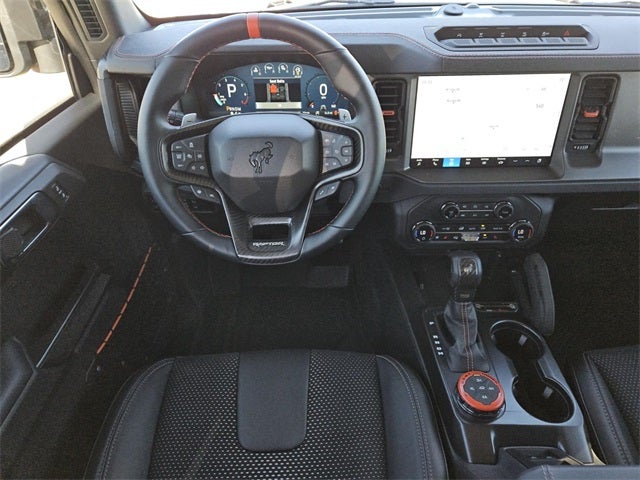 Shelter Green Metallic 2025 Ford Bronco Raptor 4WD 10-Speed Automatic 3.0L EcoBoost V6 12 Speakers, 4-Wheel Disc Brakes, ABS brakes, Air Conditioning, Alloy wheels, AM/FM radio: SiriusXM with 360L, Auto High-beam Headlights, Auto-dimming Rear-View mirror, Automatic temperature control, Brake assist, Compass, Connected Navigation, Convertible HardTop, Convertible roof lining, Delay-off headlights, Driver door bin, Driver vanity mirror, Dual front impact airbags, Dual front side impact airbags, Electronic Stability Control, Emergency communication system: 911 Assist, Exterior Parking Camera Rear, Front anti-roll bar, Front Bucket Seats, Front Center Armrest, Front dual zone A/C, Front fog lights, Front reading lights, Front wheel independent suspension, Fully automatic headlights, Garage door transmitter, Glass rear window, Heated door mirrors, Heated front seats, Heated steering wheel, Illuminated entry, Integrated roll-over protection, Leather Shift Knob, Low tire pressure warning, Marine Grade Vinyl Bucket Seats, Navigation system: Connected Navigation, Occupant sensing airbag, Outside temperature display, Overhead airbag, Overhead console, Panic alarm, Passenger door bin, Passenger vanity mirror, Power door mirrors, Power steering, Power windows, Radio data system, Radio: B&O Sound System by Bang & Olufsen, Rear anti-roll bar, Rear seat center armrest, Rear window defroster, Rear window wiper, Remote keyless entry, Security system, SiriusXM w/360L, Speed control, Split folding rear seat, Steering wheel mounted audio controls, SYNC 4, Tachometer, Telescoping steering wheel, Tilt steering wheel, Traction control, Trip computer, Turn signal indicator mirrors, Variably intermittent wipers, Voltmeter, and Wheels: 17 Black High Gloss-Painted Aluminum.