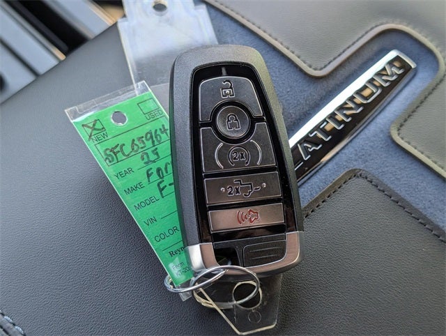 White Metallic 2025 Ford F-150 Platinum 4WD 10-Speed Automatic 3.5L V6 EcoBoost 4WD, 4-Wheel Disc Brakes, 8 Speakers, ABS brakes, Adjustable pedals, Air Conditioning, Alloy wheels, AM/FM radio: SiriusXM with 360L, Auto High-beam Headlights, Auto tilt-away steering wheel, Auto-dimming door mirrors, Auto-dimming Rear-View mirror, Automatic temperature control, Brake assist, Bumpers: body-color, Compass, Delay-off headlights, Driver door bin, Driver vanity mirror, Dual front impact airbags, Dual front side impact airbags, Electronic Locking w/3.55 Axle Ratio, Electronic Stability Control, Emergency communication system: SYNC 4 911 Assist, Front anti-roll bar, Front Bucket Seats, Front Center Armrest, Front dual zone A/C, Front fog lights, Front reading lights, Front wheel independent suspension, Fully automatic headlights, Garage door transmitter, Heated door mirrors, Heated front seats, Heated rear seats, Heated steering wheel, Illuminated entry, Internet access capable: FordPass Connect 5G, Leather steering wheel, Low tire pressure warning, Memory seat, Navigation system: Connected Navigation, Occupant sensing airbag, Outside temperature display, Overhead airbag, Overhead console, Panic alarm, Passenger door bin, Passenger vanity mirror, Pedal memory, Power door mirrors, Power driver seat, Power passenger seat, Power steering, Power windows, Radio data system, Radio: B&O Sound System by Bang & Olufsen, Rain sensing wipers, Rear reading lights, Rear seat center armrest, Rear step bumper, Rear window defroster, Remote keyless entry, Security system, Speed control, Split folding rear seat, Steering wheel memory, Steering wheel mounted audio controls, SYNC 4 w/Enhanced Voice Recognition, Tachometer, Telescoping steering wheel, Tilt steering wheel, Traction control, Trip computer, Turn signal indicator mirrors, Unique Multi-Contour Leather Bucket Seats, Variably intermittent wipers, Ventilated front seats, Voltmeter, and Wheels: 20 Painted Gloss Ebony Black. 4WD.