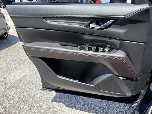 Deep Crystal Blue Mica 2025 Mazda CX-5 2.5 Turbo Signature AWD 6-Speed Automatic 10 Speakers, 4-Wheel Disc Brakes, ABS brakes, Air Conditioning, Alloy wheels, AM/FM radio: SiriusXM, AppLink/Apple CarPlay and Android Auto, Auto High-beam Headlights, Auto-dimming Rear-View mirror, Automatic temperature control, Brake assist, Bumpers: body-color, Cargo Tray, Delay-off headlights, Driver door bin, Driver vanity mirror, Dual front impact airbags, Dual front side impact airbags, E911 Automatic Emergency Notification, Electronic Stability Control, Emergency communication system: MAZDA CONNECT, First Aid Kit, Four wheel independent suspension, Front anti-roll bar, Front Bucket Seats, Front Center Armrest w/Storage, Front dual zone A/C, Front reading lights, Fully automatic headlights, Garage door transmitter: HomeLink, Genuine wood dashboard insert, Genuine wood door panel insert, Heads-Up Display, Heated door mirrors, Heated front seats, Heated rear seats, Heated steering wheel, Heated/Ventilated Front Bucket Seats, Illuminated entry, Infotainment System Voice Command, Leather Shift Knob, Leather steering wheel, Low tire pressure warning, Mazda Navigation System, Memory seat, Multifunction Commander Control, Nappa Leather Seat Trim, Navigation system: MAZDA CONNECT, Occupant sensing airbag, Outside temperature display, Overhead airbag, Overhead console, Pandora, Panic alarm, Passenger door bin, Passenger vanity mirror, Power door mirrors, Power driver seat, Power Liftgate, Power moonroof, Power passenger seat, Power steering, Power windows, Radio Broadcast Data System Program Information, Radio data system, Radio: AM/FM/HD Audio System, Rain sensing wipers, Rear anti-roll bar, Rear reading lights, Rear seat center armrest, Rear window defroster, Rear window wiper, Remote keyless entry, Retractable Cargo Cover, SMS Text Msg Audio Delivery & Reply, Speed control, Speed-sensing steering, Split folding rear seat, Spoiler, Steering wheel mounted audio controls, Tachometer, Telescoping steering wheel, Tilt steering wheel, Traction control, Trip computer, Turn signal indicator mirrors, Variably intermittent wipers, Ventilated front seats, Wheel Locks, and Wheels: 19 x 7J Aluminum Alloy. 2.5L I4