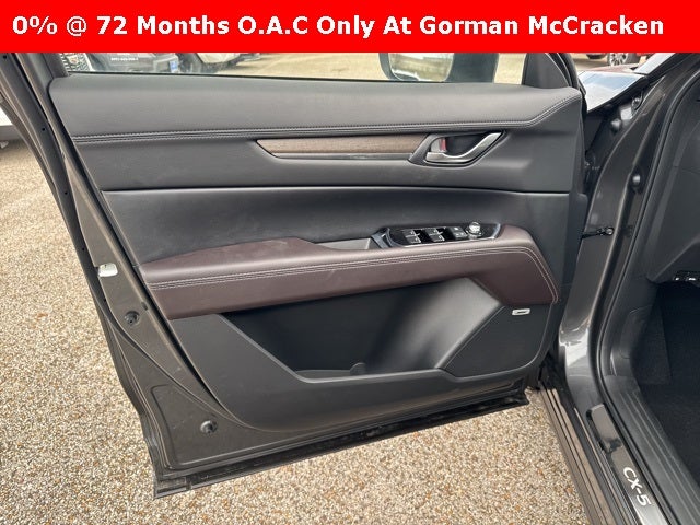 Machine Gray Metallic 2025 Mazda CX-5 2.5 Turbo Signature AWD 6-Speed Automatic Roof Rails & Cross Bars Package, 10 Speakers, 4-Wheel Disc Brakes, ABS brakes, Air Conditioning, Alloy wheels, AM/FM radio: SiriusXM, AppLink/Apple CarPlay and Android Auto, Auto High-beam Headlights, Auto-dimming Rear-View mirror, Automatic temperature control, Brake assist, Bumpers: body-color, Delay-off headlights, Driver door bin, Driver vanity mirror, Dual front impact airbags, Dual front side impact airbags, E911 Automatic Emergency Notification, Electronic Stability Control, Emergency communication system: MAZDA CONNECT, Four wheel independent suspension, Front anti-roll bar, Front Bucket Seats, Front Center Armrest w/Storage, Front dual zone A/C, Front reading lights, Fully automatic headlights, Garage door transmitter: HomeLink, Genuine wood dashboard insert, Genuine wood door panel insert, Heads-Up Display, Heated door mirrors, Heated front seats, Heated rear seats, Heated steering wheel, Heated/Ventilated Front Bucket Seats, Illuminated Doorsill Trim Plates, Illuminated entry, Infotainment System Voice Command, Leather Shift Knob, Leather steering wheel, Low tire pressure warning, Machine Gray Metallic Paint, Mazda Navigation System, Memory seat, Multifunction Commander Control, Nappa Leather Seat Trim, Navigation system: MAZDA CONNECT, Occupant sensing airbag, Outside temperature display, Overhead airbag, Overhead console, Pandora, Panic alarm, Passenger door bin, Passenger vanity mirror, Power door mirrors, Power driver seat, Power Liftgate, Power moonroof, Power passenger seat, Power steering, Power windows, Radio Broadcast Data System Program Information, Radio data system, Radio: AM/FM/HD Audio System, Rain sensing wipers, Rear anti-roll bar, Rear Bumper Guard, Rear reading lights, Rear seat center armrest, Rear window defroster, Rear window wiper, Remote keyless entry, SMS Text Msg Audio Delivery & Reply, Speed control, Speed-sensing steering, Split folding rear seat, Spoiler, Steering wheel mounted audio controls, Tachometer, Telescoping steering wheel, Tilt steering wheel, Traction control, Trip computer, Turn signal indicator mirrors, Variably intermittent wipers, Ventilated front seats, Wheel Locks, and Wheels: 19 x 7J Aluminum Alloy. 2.5L I4