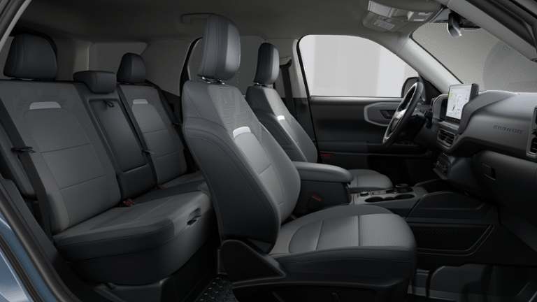 Azure Gray Metallic Tri-Coat 2026 Ford Bronco Sport Badlands 4WD 8-Speed Automatic EcoBoost 2.0L I4 GTDi DOHC Turbocharged VCT Ford Connectivity Package (1-Year Included), Internet access capable: 5G Modem - Ford Connectivity Package, 4-Wheel Disc Brakes, 6 Speakers, ABS brakes, Air Conditioning, Alloy wheels, AM/FM radio: SiriusXM with 360L, AM/FM Stereo, Apple CarPlay/Android Auto, Auto High-beam Headlights, Auto-dimming Rear-View mirror, Automatic temperature control, Brake assist, Compass, Delay-off headlights, Driver door bin, Driver vanity mirror, Dual front impact airbags, Dual front side impact airbags, Electronic Stability Control, Emergency communication system: SYNC 4 911 Assist, Exterior Parking Camera Rear, Four wheel independent suspension, Front anti-roll bar, Front Bucket Seats, Front Center Armrest, Front fog lights, Front reading lights, Fully automatic headlights, Heated door mirrors, Heated front seats, Heated steering wheel, Illuminated entry, Knee airbag, Leather-Trimmed Heated Front Sport Contour Bucket Seats, Low tire pressure warning, Memory seat, Occupant sensing airbag, Outside temperature display, Overhead airbag, Overhead console, Panic alarm, Passenger door bin, Passenger vanity mirror, Power door mirrors, Power driver seat, Power passenger seat, Power steering, Power windows, Radio data system, Rear anti-roll bar, Rear reading lights, Rear seat center armrest, Rear window defroster, Rear window wiper, Remote keyless entry, Security system, SiriusXM with 360L, Speed control, Speed-sensing steering, Speed-Sensitive Wipers, Split folding rear seat, Steering wheel mounted audio controls, SYNC 4 with Enhanced Voice Recognition, Tachometer, Telescoping steering wheel, Tilt steering wheel, Traction control, Trip computer, Variably intermittent wipers, and Wheels: 17 Matte Black-Painted Aluminum.