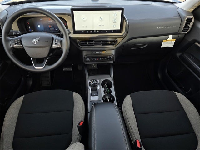 Shadow Black 2026 Ford Bronco Sport Big Bend 4WD 8-Speed Automatic 1.5L EcoBoost Ford Connectivity Package (1-Year Included), Internet access capable: 5G Modem - Ford Connectivity Package, 4-Wheel Disc Brakes, 6 Speakers, ABS brakes, Air Conditioning, Alloy wheels, AM/FM radio: SiriusXM with 360L, AM/FM Stereo, Apple CarPlay/Android Auto, Auto High-beam Headlights, Automatic temperature control, Brake assist, Compass, Delay-off headlights, Driver door bin, Driver vanity mirror, Dual front impact airbags, Dual front side impact airbags, Electronic Stability Control, Emergency communication system: SYNC 4 911 Assist, Exterior Parking Camera Rear, Four wheel independent suspension, Front anti-roll bar, Front Bucket Seats, Front Center Armrest, Front reading lights, Fully automatic headlights, Heated door mirrors, Illuminated entry, Knee airbag, Low tire pressure warning, Occupant sensing airbag, Outside temperature display, Overhead airbag, Overhead console, Panic alarm, Passenger door bin, Passenger vanity mirror, Power door mirrors, Power steering, Power windows, Radio data system, Rear anti-roll bar, Rear Parking Sensors, Rear reading lights, Rear seat center armrest, Rear window defroster, Rear window wiper, Remote keyless entry, Security system, Speed control, Speed-sensing steering, Speed-Sensitive Wipers, Split folding rear seat, Steering wheel mounted audio controls, Tachometer, Telescoping steering wheel, Tilt steering wheel, Traction control, Trip computer, Variably intermittent wipers, and Wheels: 17 Carbonized Gray Painted Aluminum.