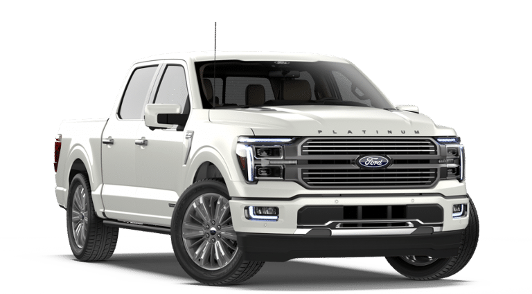Star White Metallic Tri-Coat 2026 Ford F-150 Platinum 4WD 10-Speed Automatic 3.5L PowerBoost Full-Hybrid V6 Ford Connectivity Package (1-Year Included), GVWR: 7,400 lbs Payload Package, Internet access capable: 5G Modem - Ford Connectivity Package, 3.5L PowerBoost Full-Hybrid V6, 4WD, 4-Wheel Disc Brakes, 8 Speakers, ABS brakes, Adjustable pedals, Air Conditioning, Alloy wheels, AM/FM radio: SiriusXM with 360L, Auto High-beam Headlights, Auto tilt-away steering wheel, Auto-dimming door mirrors, Auto-dimming Rear-View mirror, Automatic temperature control, Brake assist, Bumpers: body-color, Compass, Delay-off headlights, Driver door bin, Driver vanity mirror, Dual front impact airbags, Dual front side impact airbags, Electronic Locking with 3.55 Axle Ratio, Electronic Stability Control, Emergency communication system: SYNC 4 911 Assist, Front anti-roll bar, Front Bucket Seats, Front Center Armrest, Front dual zone A/C, Front fog lights, Front reading lights, Front wheel independent suspension, Fully automatic headlights, Garage door transmitter, Heated door mirrors, Heated front seats, Heated rear seats, Heated steering wheel, Illuminated entry, Leather steering wheel, Low tire pressure warning, Memory seat, Navigation system: Connected Navigation, Occupant sensing airbag, Outside temperature display, Overhead airbag, Overhead console, Panic alarm, Passenger door bin, Passenger vanity mirror, Pedal memory, Power door mirrors, Power driver seat, Power passenger seat, Power steering, Power windows, Radio data system, Radio: B&O Sound System by Bang and Olufsen, Rain sensing wipers, Rear reading lights, Rear seat center armrest, Rear step bumper, Rear window defroster, Remote keyless entry, Security system, Speed control, Split folding rear seat, Steering wheel memory, Steering wheel mounted audio controls, SYNC 4 with Enhanced Voice Recognition, Tachometer, Telescoping steering wheel, Tilt steering wheel, Traction control, Trip computer, Turn signal indicator mirrors, Unique Multi-Contour Leather Bucket Seats, Variably intermittent wipers, Ventilated front seats, and Wheels: 20 Painted Gloss Ebony Black. 3.5L PowerBoost Full-Hybrid V6, 4WD.