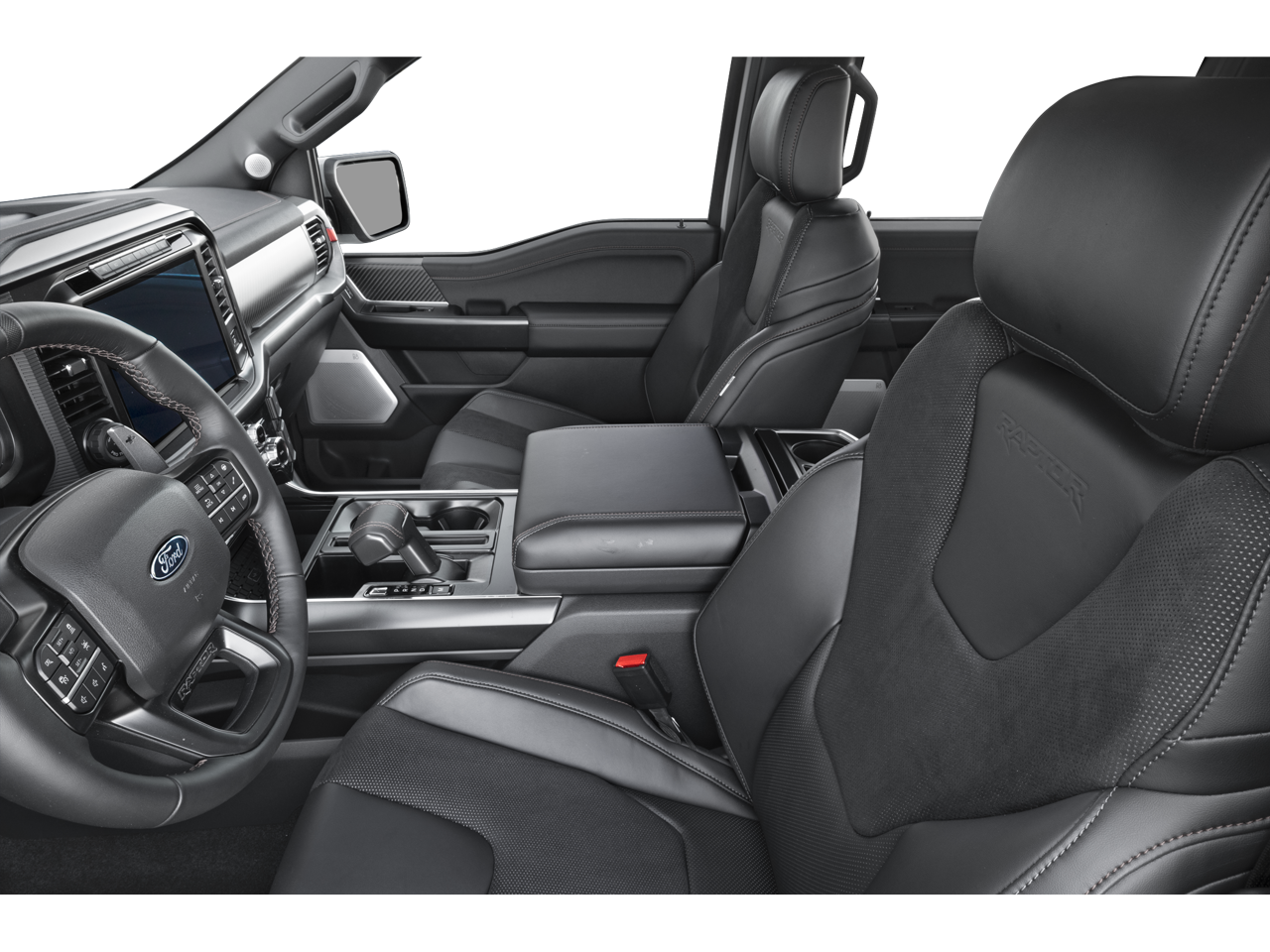 Agate Black Metallic 2026 Ford F-150 Raptor R 4WD 10-Speed Automatic 5.2L V8 Ford Connectivity Package (1-Year Included), Internet access capable: 5G Modem - Ford Connectivity Package, 4WD, 14 Speakers, 17 Cast Aluminum Wheels, 4-Wheel Disc Brakes, ABS brakes, Adjustable pedals, Air Conditioning, Alloy wheels, AM/FM radio: SiriusXM with 360L, Auto High-beam Headlights, Auto tilt-away steering wheel, Auto-dimming door mirrors, Auto-dimming Rear-View mirror, Automatic temperature control, Brake assist, Bumpers: body-color, Compass, Delay-off headlights, Driver door bin, Driver vanity mirror, Dual front impact airbags, Dual front side impact airbags, Electronic Locking with 4.10 Axle Ratio, Electronic Stability Control, Emergency communication system: SYNC 4 911 Assist, Front anti-roll bar, Front Bucket Seats, Front Center Armrest, Front dual zone A/C, Front fog lights, Front reading lights, Front wheel independent suspension, Fully automatic headlights, Garage door transmitter, Heated door mirrors, Heated front seats, Heated rear seats, Heated steering wheel, Illuminated entry, Lane Departure Warning System, Leather steering wheel, Leather Trimmed Seats, Low tire pressure warning, Memory seat, Navigation system: Connected Navigation, Occupant sensing airbag, Outside temperature display, Overhead airbag, Overhead console, Panic alarm, Passenger door bin, Passenger vanity mirror, Pedal memory, Power door mirrors, Power driver seat, Power passenger seat, Power steering, Power windows, Radio data system, Radio: B&O Unleashed Sound System by Bang & Olufsen, Rain sensing wipers, Rear reading lights, Rear step bumper, Rear window defroster, Remote keyless entry, Security system, Speed control, Speed-sensing steering, Split folding rear seat, Steering wheel memory, Steering wheel mounted audio controls, SYNC 4 with Enhanced Voice Recognition, Tachometer, Telescoping steering wheel, Tilt steering wheel, Traction control, Trip computer, Turn signal indicator mirrors, Variably intermittent wipers, and Ventilated front seats. 4WD.