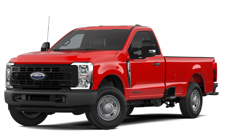 Race Red 2026 Ford F-250SD XL RWD 10-Speed Automatic Power Stroke 6.7L V8 DI 32V OHV Turbodiesel Ford Connectivity Package (1-Year Included), Internet access capable: 5G Modem - Ford Connectivity Package, ABS brakes, Compass, Electronic Stability Control, Heated door mirrors, Illuminated entry, Low tire pressure warning, Remote keyless entry, Traction control, 17 Argent Painted Steel Wheels, 3.73 Axle Ratio, 4 Speakers, 4-Wheel Disc Brakes, Air Conditioning, AM/FM radio, Brake assist, Delay-off headlights, Dual front impact airbags, Dual front side impact airbags, Emergency communication system: SYNC 4 911 Assist, Exterior Parking Camera Rear, Front anti-roll bar, Front Center Armrest w/Storage, Front reading lights, Front wheel independent suspension, Fully automatic headlights, HD Vinyl 40/20/40 Split Bench Seat, Outside temperature display, Overhead airbag, Overhead console, Panic alarm, Passenger cancellable airbag, Passenger vanity mirror, Power door mirrors, Power steering, Power windows, Rear step bumper, Security system, Speed control, Steering wheel mounted audio controls, SYNC 4, Tachometer, Telescoping steering wheel, Tilt steering wheel, Trip computer, Turn signal indicator mirrors, and Variably intermittent wipers. ABS brakes, Compass, Electronic Stability Control, Heated door mirrors, Illuminated entry, Low tire pressure warning, Remote keyless entry, Traction control.
