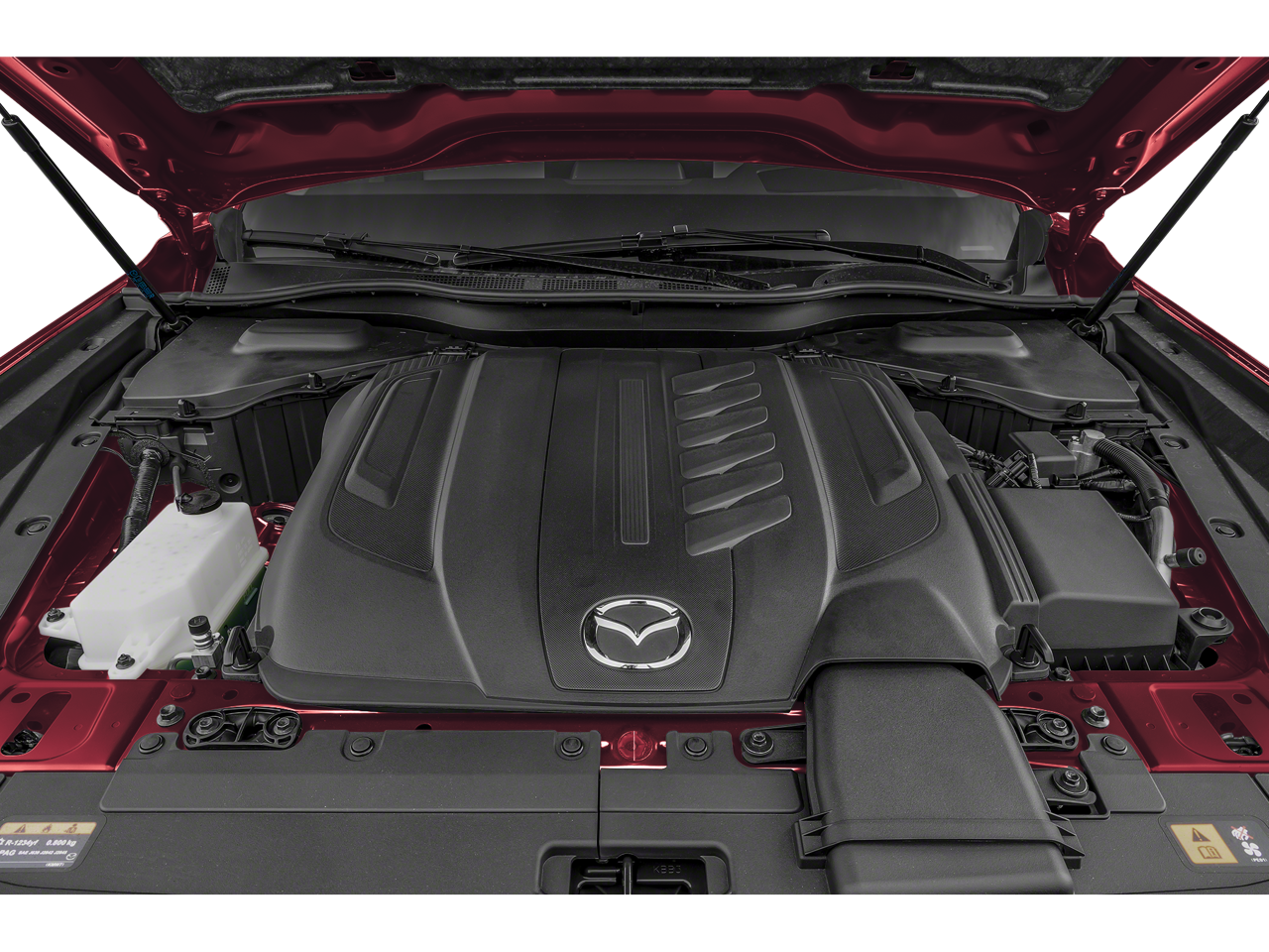 Artisan Red Premium 2026 Mazda CX-90 3.3 Turbo Premium Plus AWD 8-Speed Automatic 12 Speakers, 2nd-Row Captain's Chairs, 3rd row seats: bench, 4-Wheel Disc Brakes, ABS brakes, Air Conditioning, Alloy wheels, AM/FM radio: SiriusXM, Artisan Red Premium Paint Charge, Auto High-beam Headlights, Auto-dimming door mirrors, Automatic temperature control, Brake assist, Bumpers: body-color, Cargo Blocks, Chrome Liftgate Garnish, Compass, Delay-off headlights, Driver door bin, Driver vanity mirror, Dual front impact airbags, Dual front side impact airbags, E911 Automatic Emergency Notification, Electronic Stability Control, Emergency communication system: MAZDA CONNECT, First Aid Kit, Four wheel independent suspension, Front anti-roll bar, Front Bucket Seats, Front Center Armrest w/Storage, Front dual zone A/C, Front reading lights, Fully automatic headlights, Garage door transmitter: HomeLink, Heads-Up Display, Heated door mirrors, Heated front seats, Heated rear seats, Heated steering wheel, Heated/Ventilated Front Bucket Seats, Illuminated entry, Infotainment System Voice Command, Knee airbag, Leather Shift Knob, Leather steering wheel, Low tire pressure warning, Mazda Connected Services, Mazda Online Navigation, Memory seat, Nappa Leather Seat Trim, Navigation system: MAZDA CONNECT, Occupant sensing airbag, Outside temperature display, Overhead airbag, Overhead console, Panic alarm, Passenger door bin, Passenger vanity mirror, Power door mirrors, Power driver seat, Power Liftgate, Power moonroof, Power passenger seat, Power steering, Power windows, Radio Broadcast Data System Program Information, Radio data system, Radio: AM/FM w/HD/Bose 12-Speaker Sound System, Rain sensing wipers, Rear air conditioning, Rear anti-roll bar, Rear reading lights, Rear seat center armrest, Rear window defroster, Rear window wiper, Remote keyless entry, Roadside Assistance Kit, Security system, SMS Text Msg Audio Delivery & Reply, Speed control, Speed-sensing steering, Split folding rear seat, Spoiler, Steering wheel mounted audio controls, Tachometer, Telescoping steering wheel, Tilt steering wheel, Traction control, Trip computer, Turn signal indicator mirrors, Variably intermittent wipers, Ventilated front seats, and Wheels: 21 x 9.5J Silver Metallic Aluminum Alloy. I6 Turbo