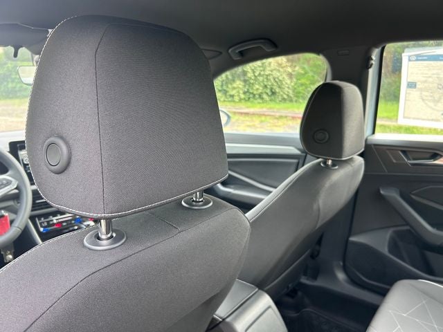 Monument Gray 2026 Volkswagen Jetta 1.5T Sport FWD 8-Speed Automatic with Tiptronic Titan Black Cloth. Titan Black Cloth, 4 Speakers, 4-Wheel Disc Brakes, ABS brakes, Active Blind Spot Monitor, Air Conditioning, Alloy wheels, Auto-dimming Rear-View mirror, Automatic temperature control, Brake assist, Bumpers: body-color, Cloth Seat Trim, Delay-off headlights, Driver door bin, Driver vanity mirror, Dual front impact airbags, Dual front side impact airbags, Electronic Stability Control, Emergency communication system: VW Car-Net Safe & Secure 5-year, Exterior Parking Camera Rear, Front anti-roll bar, Front Bucket Seats, Front Center Armrest, Front dual zone A/C, Front wheel independent suspension, Fully automatic headlights, Heated door mirrors, Heated Front Seats, Heated front seats, Illuminated entry, Leather Shift Knob, Leather steering wheel, Low tire pressure warning, Occupant sensing airbag, Outside temperature display, Overhead airbag, Overhead console, Panic alarm, Passenger door bin, Passenger vanity mirror, Power door mirrors, Power steering, Power windows, Radio data system, Radio: MIB3 Composition Color with 8 Touchscreen, Rain sensing wipers, Rear anti-roll bar, Rear reading lights, Rear seat center armrest, Rear window defroster, Remote keyless entry, Speed control, Speed-sensing steering, Split folding rear seat, Steering wheel mounted audio controls, Tachometer, Telescoping steering wheel, Tilt steering wheel, Traction control, Trip computer, Variably intermittent wipers, and Wheels: 17 2-Tone Machined Alloy. 1.5L I-4 DI DOHC Turbocharged