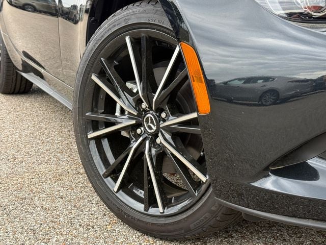 Jet Black Mica 2025 Mazda MX-5 Miata Grand Touring RWD 6-Speed Automatic 17 x 7 aluminum alloy wheels with black metallic finish, 4-Wheel Disc Brakes, 9 Speakers, ABS brakes, Air Conditioning, Alloy wheels, AM/FM radio: SiriusXM, AppLink/Apple CarPlay and Android Auto, Auto High-beam Headlights, Auto-dimming door mirrors, Auto-dimming Rear-View mirror, Automatic temperature control, black lug nuts and black wheel locks, bose audio system with audiopilot, Brake assist, Bumpers: body-color, cargo net, Convertible roof lining, Convertible roof wind blocker, Delay-off headlights, Driver vanity mirror, Dual front impact airbags, Dual front side impact airbags, Electronic Stability Control, Emergency communication system: MAZDA CONNECT, Exterior Parking Camera Rear, Four wheel independent suspension, Front anti-roll bar, Front Bucket Seats, Front Center Armrest, Fully automatic headlights, Garage door transmitter: HomeLink, Glass rear window, Heated door mirrors, heated front bucket seats, Heated front seats, Illuminated entry, Leather Shift Knob, leather upholstery, Low tire pressure warning, MAZDA CONNECT Infotainment system, Navigation System, Occupant sensing airbag, Outside temperature display, Panic alarm, Passenger vanity mirror, Power door mirrors, Power steering, Power windows, Radio data system, Rain sensing wipers, Rear anti-roll bar, Rear window defroster, Remote keyless entry, Speed control, Speed-sensing steering, Sport steering wheel, Steering wheel mounted audio controls, Tachometer, Telescoping steering wheel, Tilt steering wheel, Traction control, Trip computer, and Variably intermittent wipers. 2.0L 4-Cylinder DOHC 16V