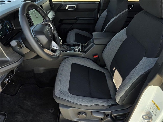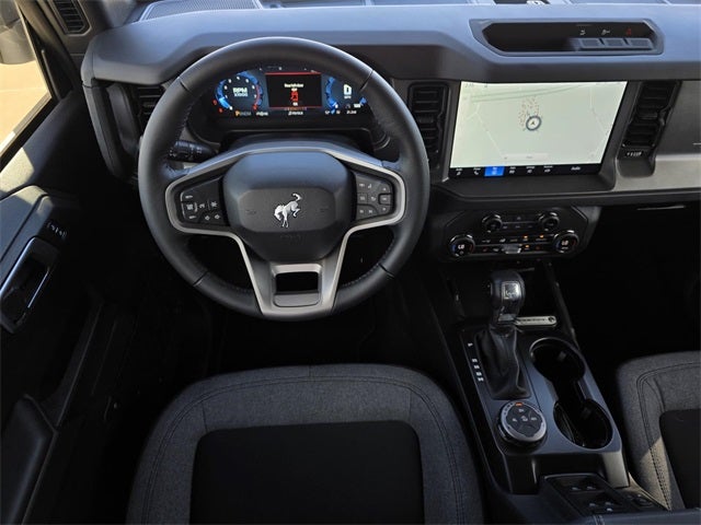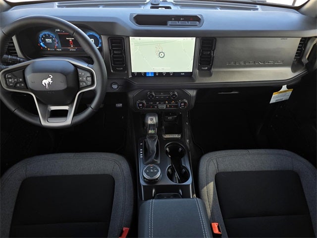 Oxford White 2026 Ford Bronco Big Bend 4WD 2.3L EcoBoost I-4 Ford Connectivity Package (1-Year Included), 4-Wheel Disc Brakes, 4.46 Axle Ratio, 7 Speakers, ABS brakes, Air Conditioning, Alloy wheels, AM/FM radio: SiriusXM with 360L, AM/FM Stereo, Auto High-beam Headlights, Brake assist, Cloth Bucket Seats, Compass, Delay-off headlights, Driver door bin, Driver vanity mirror, Dual front impact airbags, Dual front side impact airbags, Electronic Stability Control, Emergency communication system: 911 Assist, Exterior Parking Camera Rear, Front anti-roll bar, Front Bucket Seats, Front Center Armrest, Front reading lights, Front wheel independent suspension, Fully automatic headlights, Heated door mirrors, Illuminated entry, Integrated roll-over protection, Low tire pressure warning, Occupant sensing airbag, Outside temperature display, Overhead airbag, Overhead console, Panic alarm, Passenger door bin, Passenger vanity mirror, Power door mirrors, Power steering, Power windows, Radio data system, Remote keyless entry, Security system, SiriusXM with 360L, Speed control, Split folding rear seat, Steering wheel mounted audio controls, SYNC 4, Tachometer, Telescoping steering wheel, Tilt steering wheel, Traction control, Trip computer, Variably intermittent wipers, and Wheels: 17 Carbonized Gray-Painted Aluminum.