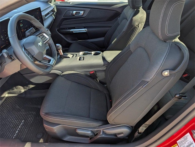 Race Red 2026 Ford Mustang EcoBoost RWD 10-Speed Automatic EcoBoost 2.3L I4 GTDi DOHC Turbocharged VCT ABS brakes, Alloy wheels, Compass, Electronic Stability Control, Front dual zone A/C, Illuminated entry, Low tire pressure warning, Remote keyless entry, Traction control, 4-Wheel Disc Brakes, 6 Speakers, Air Conditioning, AM/FM radio, AM/FM Stereo, Auto High-beam Headlights, Automatic temperature control, Brake assist, Bumpers: body-color, Cloth Bucket Seats, Delay-off headlights, Driver door bin, Driver vanity mirror, Dual front impact airbags, Dual front side impact airbags, Emergency communication system: 911 Assist, Exterior Parking Camera Rear, Four wheel independent suspension, Front anti-roll bar, Front Bucket Seats, Front Center Armrest, Front reading lights, Fully automatic headlights, Knee airbag, Leather Shift Knob, Occupant sensing airbag, Outside temperature display, Overhead airbag, Overhead console, Panic alarm, Passenger door bin, Passenger vanity mirror, Power door mirrors, Power steering, Power windows, Radio data system, Rain sensing wipers, Rear anti-roll bar, Rear Parking Sensors, Rear window defroster, Speed control, Speed-sensing steering, Speed-Sensitive Wipers, Split folding rear seat, Sport steering wheel, Steering wheel mounted audio controls, SYNC 4, Tachometer, Telescoping steering wheel, Tilt steering wheel, Trip computer, Variably intermittent wipers, and Voltmeter. ABS brakes, Alloy wheels, Compass, Electronic Stability Control, Front dual zone A/C, Illuminated entry, Low tire pressure warning, Remote keyless entry, Traction control.