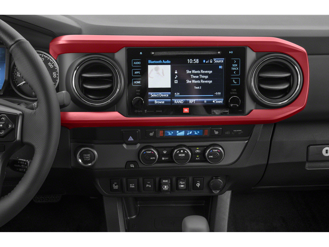 120V/400W Deck Mounted AC Power, 6 Speakers, ABS brakes, Air Conditioning, Alloy wheels, AM/FM radio: SiriusXM, Anti-whiplash front head restraints, Auto High-beam Headlights, Auto-Dimming Inside Rear-View Mirror w/Compass, Auto-dimming Rear-View mirror, Axle Ratio: 3.91, Brake assist, Bumpers: body-color, CD player, Color Keyed Rear Bumper, Driver door bin, Dual front impact airbags, Dual front side impact airbags, Electronic Stability Control, Engine Immobilizer, Exterior Parking Camera Rear, Fabric Seat Trim (FD), Front anti-roll bar, Front Bucket Seats, Front Center Armrest, Front fog lights, Front reading lights, Front wheel independent suspension, Illuminated entry, Knee airbag, Leather Seat Trim, Leather Shift Knob, LED Daytime Running Lamps, Low tire pressure warning, Navigation System, Occupant sensing airbag, Outside temperature display, Overhead airbag, Overhead console, Panic alarm, Passenger door bin, Power door mirrors, Power steering, Power windows, Radio: Entune Premium JBL AM/FM/CD w/Nav & App Ste, Radio: Entune Premium w/AM/FM/CD/Nav/App Suite, Rear step bumper, Remote keyless entry, Security system, Smart Key w/Push Button Start, Speed control, Speed-sensing steering, Split folding rear seat, Steering wheel mounted audio controls, Tachometer, Telescoping steering wheel, Tilt steering wheel, Traction control, Trip computer, Turn signal indicator mirrors, Variably intermittent wipers, Wheels: 17 x 7.5 Machined Alloy, and Wide Angle Front Fog Lamps.