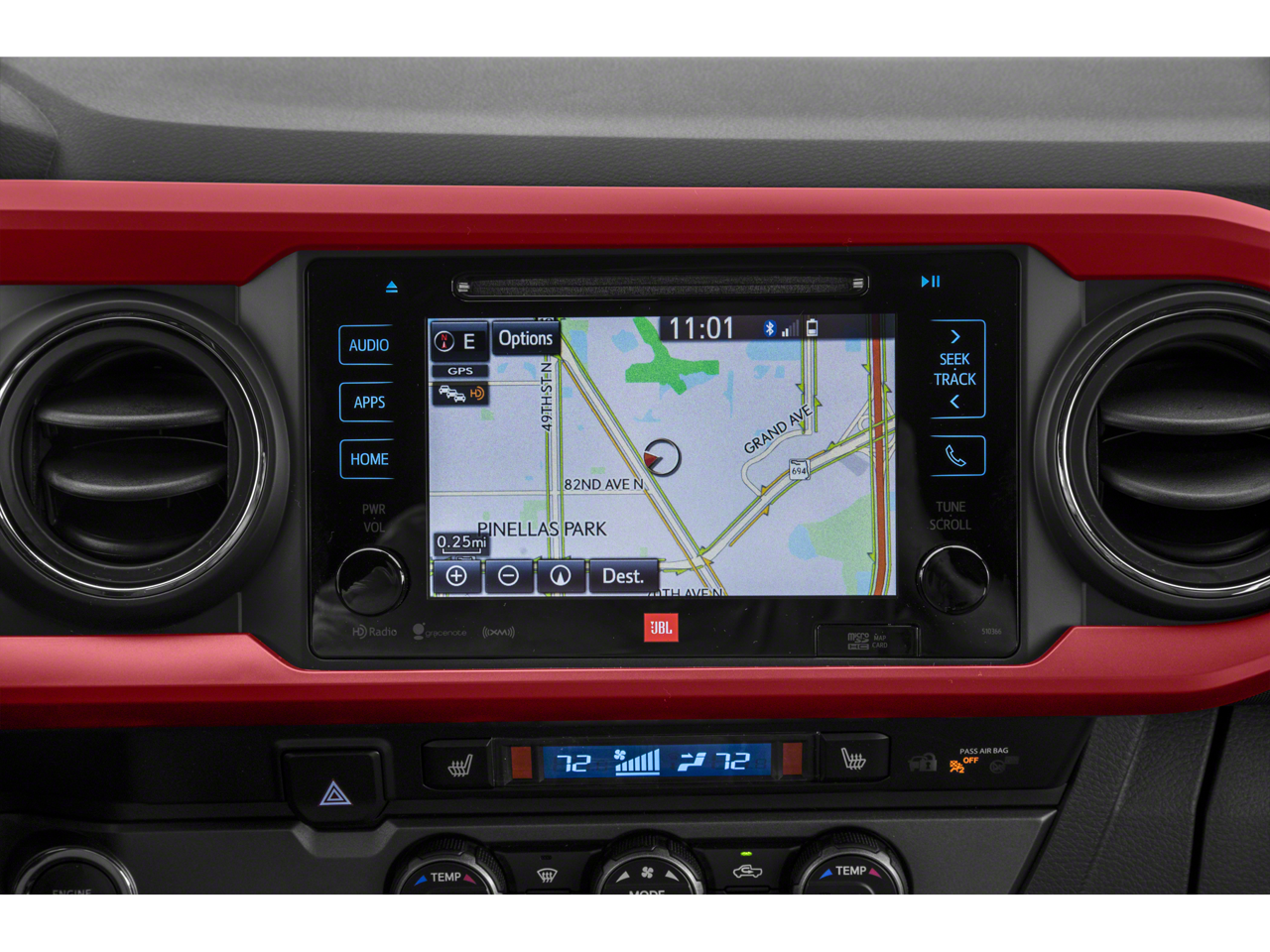 - Radio: Entune Premium w/AM/FM/CD/Nav/App Suite -inc: 6 speakers, 7" high-resolution touch-screen display w/split screen, auxiliary port, USB media port, Siri eyes free, advanced voice recognition, Bluetooth® hands-free phone capability, phone book access and music streaming, cache radio, HD Radio, HD predictive traffic and doppler weather overlay and SiriusXM satellite radio w/complimentary SiriusXM All Access 90-day trial subscription included, Entune App Suite, Destination Search, iHeartRadio, MovieTickets.com, OpenTable, Pandora, Yelp, Facebook Places and Slacker Radio