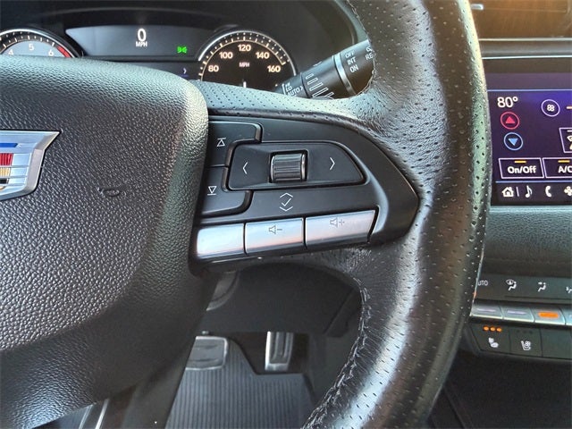 Cold Weather Package (Heated Automatic Steering Wheel, Heated Driver & Front Passenger Seats, and Heated Rear Outboard Seating Positions), Comfort & Convenience Package (8-Way Power Passenger Seat Adjuster, Power Lumbar Massage Driver Seat, Power Lumbar Massage Front Passenger Seat, and Ventilated Driver & Front Passenger Seats), Preferred Equipment Group 1SF (4.2 Diagonal Color Display Driver Info Center, 6-Way Power Passenger Seat Adjuster, Auto-Dimming Inside Rear-View Mirror, Automatic Emergency Braking, Body-Color Heated Power-Adjustable Outside Mirrors, Cruise Control w/Set & Resume Speed, Front & Rear Park Assist, HD Rear Vision Camera, and Manual Rake & Telescopic Steering Column), 3.47 Axle Ratio, 4-Way Driver Seat Power Lumbar Control, 4-Way Passenger Seat Power Lumbar Control, 4-Wheel Disc Brakes, 7 Speakers, 7-Speaker Audio System w/Auxiliary Amplifier, 8-Way Power Driver Seat Adjuster, ABS brakes, Air Conditioning, Alloy wheels, AM/FM radio: SiriusXM, Apple CarPlay/Android Auto, Auto-dimming door mirrors, Auto-dimming Rear-View mirror, Automatic temperature control, Brake assist, Bumpers: body-color, Compass, Delay-off headlights, Driver door bin, Driver vanity mirror, Dual front impact airbags, Dual front side impact airbags, Electronic Stability Control, Emergency communication system: OnStar and Cadillac connected services capable, Exterior Parking Camera Rear, Four wheel independent suspension, Front anti-roll bar, Front Bucket Seats, Front Center Armrest, Front dual zone A/C, Front License Plate Bracket, Front reading lights, Fully automatic headlights, Garage door transmitter, Heated door mirrors, Illuminated entry, Knee airbag, Leather steering wheel, Leatherette Seating Surfaces, Low tire pressure warning, Memory seat, Occupant sensing airbag, Outside temperature display, Overhead airbag, Overhead console, Panic alarm, Passenger door bin, Passenger vanity mirror, Power door mirrors, Power driver seat, Power Liftgate, Power passenger seat, Power steering, Power windows, Radio data system, Radio: Cadillac User Experience AM/FM Stereo, Rain sensing wipers, Rear anti-roll bar, Rear reading lights, Rear seat center armrest, Rear window defroster, Rear window wiper, Remote keyless entry, Roof rack: rails only, Security system, SiriusXM w/360L, Speed control, Speed-sensing steering, Split folding rear seat, Spoiler, Sport steering wheel, Standard Suspension, Steering wheel mounted audio controls, Tachometer, Telescoping steering wheel, Tilt steering wheel, Traction control, Trip computer, Variably intermittent wipers, Voltmeter, Wheels: 18 10-Spoke Diamond Cut/Argent Met Alloy, Wheels: 20 Dynamic 9-Spoke Alloy, and Wheels: 20 Split 7-Spoke Alloy (LPO)