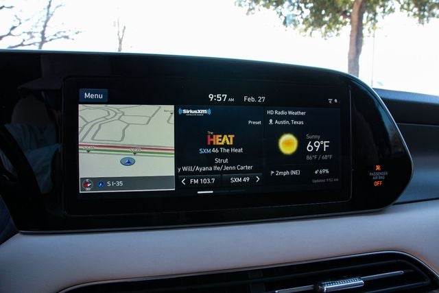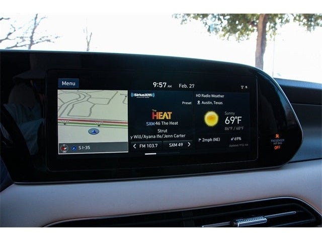 - Radio: AM/FM/MP3 Premium Audio System -inc: 630-Watts, 12-speaker harman/kardon premium audio system, QuantumLogic surround sound, Clari-Fi music restoration technology, 10.25" color touchscreen, on-board navigation, traffic flow including incident data via HD Radio (HERE), SiriusXM, HD Radio, Apple CarPlay & Android Auto, Blue Link Connected Car, driver talk (in-car intercom), quiet mode, multiple device connection (up to 2 devices), USB/Auxiliary input jacks, rearview monitor w/parking guidelines, Bluetooth® hands-free w/wireless audio streaming and wireless device charging (for Qi-supported devices)