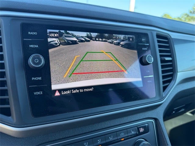 3.60 Axle Ratio, 4-Wheel Disc Brakes, 6 Speakers, ABS brakes, Air Conditioning, Alloy wheels, AM/FM radio: SiriusXM with 360L, Auto-dimming Rear-View mirror, Automatic temperature control, Brake assist, Bumpers: body-color, Car-Net Safe & Secure 3-Year, Compass, Delay-off headlights, Driver door bin, Driver vanity mirror, Dual front impact airbags, Dual front side impact airbags, Electronic Stability Control, Emergency communication system: VW Car-Net services (capabilities require enrollment or subscription), Exterior Parking Camera Rear, Four wheel independent suspension, Frameless Self-Dimming Rearview Mirror, Front anti-roll bar, Front Bucket Seats, Front Center Armrest, Front dual zone A/C, Front fog lights, Front reading lights, Fully automatic headlights, Heated Comfort Front Bucket Seats, Heated door mirrors, Heated front seats, Heavy Duty Trunk Liner w/VW CarGo Blocks, Illuminated entry, Leather Shift Knob, Low tire pressure warning, Occupant sensing airbag, Outside temperature display, Overhead airbag, Overhead console, Panic alarm, Passenger door bin, Passenger vanity mirror, Perforated V-Tex Leatherette Seating Surfaces, Power door mirrors, Power driver seat, Power Liftgate, Power steering, Power windows, Radio data system, Radio: MIB3 Composition Media w/8 Touchscreen, Rain sensing wipers, Rear anti-roll bar, Rear reading lights, Rear seat center armrest, Rear window defroster, Rear window wiper, Remote keyless entry, Roadside Assistance Kit, Roof rack: rails only, Rubber Mats Kit, Security system, Speed control, Speed-sensing steering, Split folding rear seat, Spoiler, Sport steering wheel, Standard Suspension, Steering wheel mounted audio controls, Tachometer, Telescoping steering wheel, Tilt steering wheel, Traction control, Trip computer, Turn signal indicator mirrors, Variably intermittent wipers, VW Care, and Wheels: 20 Twin 5-Spoke Dark Graphite Alloy.