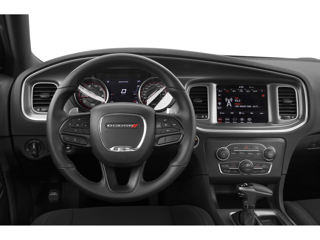 Quick Order Package 2EH, Black Cloth, 1-Yr SiriusXM Guardian Trial, 2-Piece Shark Fin Antenna, 4-Wheel Disc Brakes, 4G LTE Wi-Fi Hot Spot, 6 Speakers, 8.4 Touchscreen Display, ABS brakes, Air Conditioning, Alloy wheels, AM/FM radio: SiriusXM, Anti-whiplash front head restraints, Apple CarPlay, Apple CarPlay/Android Auto, Auto-dimming Rear-View mirror, Automatic temperature control, Brake assist, Bumpers: body-color, Cloth Performance Seats, Compass, Delay-off headlights, Driver door bin, Driver vanity mirror, Dual front impact airbags, Dual front side impact airbags, Electronic Stability Control, Emergency communication system: SiriusXM Guardian, For Details, Visit DriveUconnect.com, Four wheel independent suspension, Front anti-roll bar, Front Bucket Seats, Front Center Armrest, Front dual zone A/C, Front License Plate Bracket, Front reading lights, Fully automatic headlights, Garage door transmitter: HomeLink, Google Android Auto, GPS Antenna Input, HD Radio, Heated door mirrors, Illuminated entry, Integrated Center Stack Radio, Integrated Voice Command w/Bluetooth®, Knee airbag, Leather Shift Knob, Low tire pressure warning, Manufacturer's Statement of Origin, Media Hub (2 USB, AUX), Occupant sensing airbag, Outside temperature display, Overhead airbag, Overhead console, Panic alarm, ParkView Rear Back-Up Camera, Passenger door bin, Passenger vanity mirror, Power 2-Way Driver Lumbar Adjust, Power 8-Way Driver Seat, Power door mirrors, Power driver seat, Power steering, Power windows, Radio: Uconnect 4C w/8.4 Display, Rear anti-roll bar, Rear Armrest w/Cupholder Seat, Rear reading lights, Rear seat center armrest, Rear window defroster, Remote keyless entry, Speed control, Speed-Sensitive Wipers, Split folding rear seat, Spoiler, Steering wheel mounted audio controls, Tachometer, Telescoping steering wheel, Tilt steering wheel, Traction control, Trip computer, USB Host Flip, Variably intermittent wipers, and Wheels: 20 x 8 Satin Carbon PainteD.