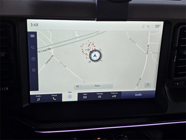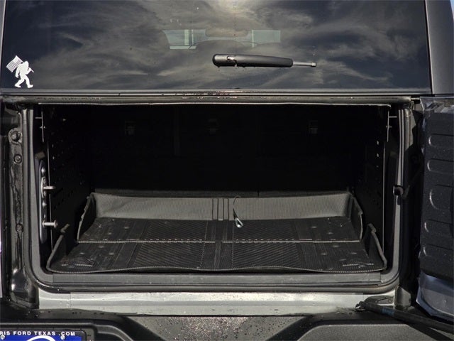 This 2023 Iconic Silver Metallic Ford Bronco Wildtrak 4WD is well equipped and includes these features and benefits: ABS brakes, Compass, Electronic Stability Control, Heated door mirrors, Illuminated entry, Low tire pressure warning, Remote keyless entry, Traction control, 4-Wheel Disc Brakes, 7 Speakers, Air Conditioning, AM/FM radio: SiriusXM with 360L, AM/FM Stereo, Auto High-beam Headlights, Brake assist, Delay-off headlights, Driver door bin, Driver vanity mirror, Dual front impact airbags, Dual front side impact airbags, Emergency communication system: 911 Assist, Exterior Parking Camera Rear, Front anti-roll bar, Front Bucket Seats, Front Center Armrest, Front reading lights, Front wheel independent suspension, Fully automatic headlights, Integrated roll-over protection, Occupant sensing airbag, Outside temperature display, Overhead airbag, Overhead console, Panic alarm, Passenger door bin, Passenger vanity mirror, Power door mirrors, Power steering, Power windows, Radio data system, Security system, SiriusXM Radio w/360L, Speed control, Split folding rear seat, Steering wheel mounted audio controls, SYNC 4, Tachometer, Telescoping steering wheel, Tilt steering wheel, Trip computer, and Variably intermittent wipers.