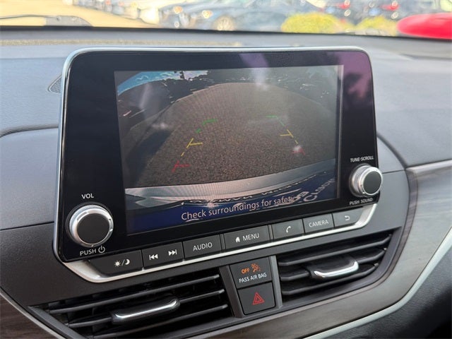 CVT with Xtronic, 17 Machined Alloy Wheels, 4-Wheel Disc Brakes, 6 Speakers, ABS brakes, Air Conditioning, Alloy wheels, AM/FM radio: SiriusXM, Auto High-beam Headlights, Blind Spot Warning, Brake assist, Bumpers: body-color, Cloth Seat Trim, Delay-off headlights, Driver door bin, Driver vanity mirror, Dual front impact airbags, Dual front side impact airbags, Electronic Stability Control, Floor Mats/Trunk Mat/Hideaway Net, Four wheel independent suspension, Front anti-roll bar, Front Bucket Seats, Front Center Armrest, Front reading lights, Fully automatic headlights, Illuminated entry, Knee airbag, Low tire pressure warning, NissanConnect featuring Apple CarPlay and Android Auto, Occupant sensing airbag, Outside temperature display, Overhead airbag, Overhead console, Panic alarm, Passenger door bin, Passenger vanity mirror, Power door mirrors, Power driver seat, Power steering, Power windows, Radio data system, Radio: AM/FM Audio System, Rear anti-roll bar, Rear Parking Sensors, Rear reading lights, Rear seat center armrest, Rear side impact airbag, Rear window defroster, Remote keyless entry, Security system, Speed control, Speed-sensing steering, Speed-Sensitive Wipers, Split folding rear seat, Steering wheel mounted audio controls, Tachometer, Telescoping steering wheel, Tilt steering wheel, Traction control, Trip computer, and Variably intermittent wipers.