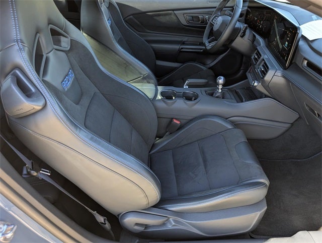 This 2024 Vapor Blue Metallic Ford Mustang Dark Horse RWD is well equipped and includes these features and benefits: Equipment Group 700A Deluxe Package (Aluminum Foot Pedals, Approach Detection, Cloth/Vinyl Climate-Controlled Bucket Seats, Memory Driver Seat & Mirrors, and Universal Garage Door Opener (UGDO)), Ford Co-Pilot360 Assist+ (Adaptive Speed Control w/Stop & Go, Connected Built-In Navigation, and Lane-Keeping System w/Lane Keeping Aid), RECARO Sport Seats (RECARO Micro-Suede/Vinyl Bucket Seats), Security Package (Active Anti-Theft System, Electronic-Locking Center Console, and Wheel Locking Kit), 12 Speakers, 4-Wheel Disc Brakes, ABS brakes, Adaptive suspension, Air Conditioning, Alloy wheels, AM/FM radio: SiriusXM with 360L, AM/FM Stereo, Auto High-beam Headlights, Auto-dimming Rear-View mirror, Automatic temperature control, B&O Sound System by Bang & Olufsen, Brake assist, Bumpers: body-color, Cloth/Vinyl Heated Bucket Seats, Compass, Delay-off headlights, Driver door bin, Driver vanity mirror, Dual front impact airbags, Dual front side impact airbags, Electronic Stability Control, Emergency communication system: 911 Assist, Exterior Parking Camera Rear, Four wheel independent suspension, Front anti-roll bar, Front Bucket Seats, Front Center Armrest, Front dual zone A/C, Front reading lights, Fully automatic headlights, HD Radio, Heated front seats, Heated steering wheel, Illuminated entry, Knee airbag, Low tire pressure warning, Navigation system: Connected Navigation, Occupant sensing airbag, Outside temperature display, Overhead airbag, Overhead console, Panic alarm, Passenger door bin, Passenger vanity mirror, Power door mirrors, Power driver seat, Power passenger seat, Power steering, Power windows, Radio data system, Rain sensing wipers, Rear anti-roll bar, Rear Parking Sensors, Rear window defroster, Remote keyless entry, SiriusXM w/360L, Speed control, Speed-sensing steering, Speed-Sensitive Wipers, Split folding rear seat, Spoiler, Sport steering wheel, Steering wheel mounted audio controls, SYNC 4.0 QNX, Tachometer, Tarnish Dark Low Gloss/Gloss Blk Vinyl Hood Stripe, Telescoping steering wheel, Tilt steering wheel, Traction control, Trip computer, Variably intermittent wipers, Voltmeter, and Wheels: 19 x 9.5 Fr & 19 x 10 Rr Aluminum.