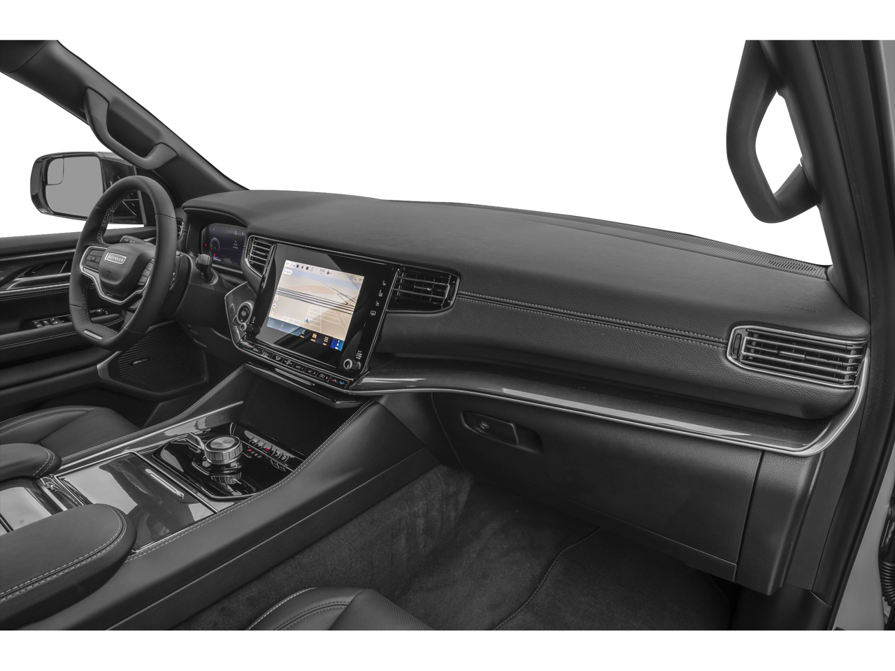 Preferred Equipment Group (DISC) (60/40 Power Recline 3rd Row Seat, Heads-Up Display, Quadra-Lift Air Suspension, and Semi Active Damping), Quick Order Package 25N, 10 Speakers, 3.55 Rear Axle Ratio, 3rd row seats: bench, 4-Wheel Disc Brakes, 8-Passenger Seating, ABS brakes, Adjustable pedals, Air Conditioning, Alloy wheels, AM/FM radio: SiriusXM with 360L, Anti-whiplash front head restraints, Apple CarPlay/Android Auto, Audio memory, Auto High-beam Headlights, Auto-dimming door mirrors, Auto-dimming Rear-View mirror, Auto-leveling suspension, Automatic temperature control, Brake assist, Bumpers: body-color, Compass, Delay-off headlights, Driver door bin, Driver vanity mirror, Driver's Seat Mounted Armrest, Dual front impact airbags, Dual front side impact airbags, Electronic Stability Control, Emergency communication system: Wagoneer Connect, Exterior Parking Camera Rear, Four wheel independent suspension, Front anti-roll bar, Front Bucket Seats, Front Center Armrest w/Storage, Front dual zone A/C, Front fog lights, Front reading lights, Fully automatic headlights, Garage door transmitter, Genuine wood console insert, Genuine wood dashboard insert, Genuine wood door panel insert, Heated door mirrors, Heated front seats, Heated rear seats, Heated steering wheel, Illuminated entry, Knee airbag, Leather Trimmed Bucket Seats, Low tire pressure warning, Memory seat, Navigation System, Normal Duty Suspension, Occupant sensing airbag, Outside temperature display, Overhead airbag, Overhead console, Panic alarm, Passenger door bin, Passenger seat mounted armrest, Passenger vanity mirror, Pedal memory, Power adjustable front head restraints, Power door mirrors, Power driver seat, Power Liftgate, Power passenger seat, Power steering, Power windows, Radio data system, Radio: Uconnect 5 Nav w/10.1 Display, Rain sensing wipers, Rear air conditioning, Rear anti-roll bar, Rear dual zone A/C, Rear reading lights, Rear seat center armrest, Rear window defroster, Rear window wiper, Reclining 3rd row seat, Remote keyless entry, Security system, Speed control, Speed-sensing steering, Speed-Sensitive Wipers, Split folding rear seat, Steering wheel memory, Steering wheel mounted audio controls, Tachometer, Telescoping steering wheel, Tilt steering wheel, Traction control, Trip computer, Turn signal indicator mirrors, Variably intermittent wipers, Ventilated front seats, Voltmeter, and Wheels: 20 x 9.0 Aluminum (DISC)
