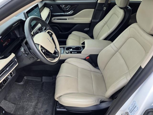 This 2025 Pristine White Metallic Tri-Coat Lincoln Corsair Reserve FWD is well equipped and includes these features and benefits: 19 Bright Machined Aluminum Wheels, 4-Wheel Disc Brakes, 9 Speakers, ABS brakes, Air Conditioning, Alexa Built-In, Alloy wheels, AM/FM radio: SiriusXM with 360L, Apple CarPlay/Android Auto, Auto High-beam Headlights, Auto-dimming Rear-View mirror, Automatic temperature control, Brake assist, Bumpers: body-color, Compass, Delay-off headlights, Driver door bin, Driver vanity mirror, Dual front impact airbags, Dual front side impact airbags, Electronic Stability Control, Emergency communication system: 911 Assist, Four wheel independent suspension, Front anti-roll bar, Front Bucket Seats, Front Center Armrest, Front dual zone A/C, Front reading lights, Fully automatic headlights, Heated door mirrors, Heated front seats, Illuminated entry, Knee airbag, Leather steering wheel, Low tire pressure warning, Memory seat, Navigation system: Connected Navigation (4-year trial), Occupant sensing airbag, Outside temperature display, Overhead airbag, Overhead console, Panic alarm, Passenger door bin, Passenger vanity mirror, Power door mirrors, Power driver seat, Power Liftgate, Power passenger seat, Power steering, Power windows, Premium Leather-Trimmed Heated Captain's Chairs, Radio data system, Radio: Lincoln Premium Audio System w/MP3, Rear anti-roll bar, Rear Parking Sensors, Rear reading lights, Rear seat center armrest, Rear window defroster, Rear window wiper, Remote keyless entry, Security system, SiriusXM w/360L Radio, Speed control, Speed-sensing steering, Speed-Sensitive Wipers, Split folding rear seat, Spoiler, Steering wheel mounted A/C controls, Steering wheel mounted audio controls, SYNC 4 Communications & Entertainment System, Tachometer, Telescoping steering wheel, Tilt steering wheel, Traction control, Trip computer, and Variably intermittent wipers.