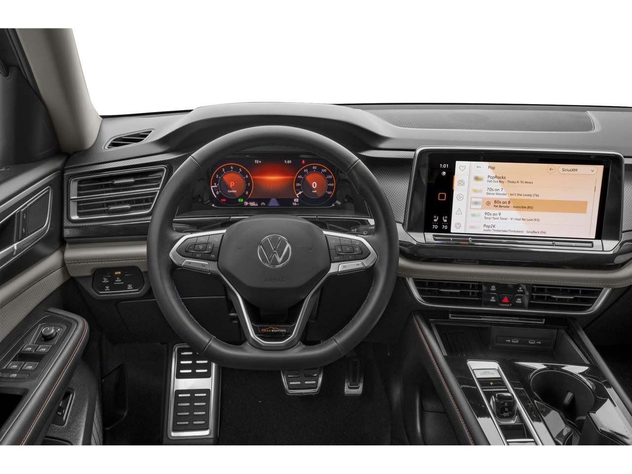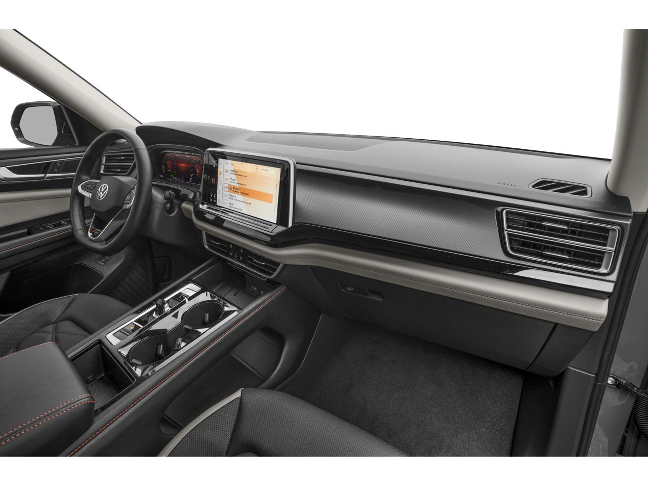 • Radio: MIB3 Composition Media -inc: 12" touchscreen multi-function center display, AM/FM/HD Radio and WMA/MP3/FLAC player w/USB-C input, voice control, SiriusXM w/360L (w/3-month free trial subscription; 360L services require acceptance of SiriusXM terms), 6-speaker sound system, Bluetooth® connectivity (for compatible devices), capability for in-vehicle 4G LTE enabled Wi-Fi (cellular data plan required; includes limited trial), capability for VW Car-Net services (capabilities for services vary; requires enrollment or subscription), App-Connect smartphone integration (w/Apple CarPlay, Android Auto and MirrorLink) via USB, wireless App-Connect smartphone integration (for compatible devices) w/multi-phone pairing capability and Qi wireless inductive charger up to 15W (for compatible mobile phones and accessories) in front row All VW Car-Net services subject to terms and limitations. Some services, which include emergency assistance services, require a paid subscription. See dealer or vw.com/carnet for details.