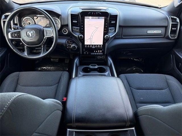 Big Horn Level B Equipment Group (115V Auxiliary Power Outlet, 2nd Row In Floor Storage Bins, 400W Inverter, 4G LTE Wi-Fi Hot Spot, 9 Amplified Speakers w/Subwoofer, Air Conditioning ATC w/Dual Zone Control, All R1 High Radios, All Radio Equipped Vehicles, Apple CarPlay, Auto-Dimming Exterior Driver Mirror, Auto-Dimming Rear-View Mirror, Black Premium Power Mirrors, Class IV Receiver Hitch, Cluster 7.0 TFT Color Display, Connected Travel & Traffic Services, Connectivity - US/Canada, Convex Wide-Angle Exterior Mirror Insert, Exterior Mirrors Courtesy Lamps, Exterior Mirrors w/Heating Element, Exterior Mirrors w/Supplemental Signals, For Details, Visit DriveUconnect.com, For More Info, Call 800-643-2112, Front Fog Lamps, Global Telematics Box Module (TBM), Glove Box Lamp, Google Android Auto, GPS Navigation, HD Radio, Heated Front Seats, Heated Steering Wheel, Integrated Voice Command w/Bluetooth®, LED Footwell Lighting, Media Hub w/2 Charge Only USBs, ParkSense Front/Rear Park Assist w/Stop, Power 2-Way Driver Lumbar Adjust, Power 8-Way Driver Seat, Power Adjustable Pedals, Power-Folding Mirrors, Radio: Uconnect 5 Nav w/12.0 Display, Rear Dome w/On/Off Switch Lamp, Rear Power Sliding Window, Rear Window Defroster, Remote Start System, Security Alarm, SiriusXM Radio Service, SiriusXM Satellite Radio, SiriusXM w/360L, Sun Visors w/Illuminated Vanity Mirrors, Universal Garage Door Opener, and USB Host Flip), Night Edition (3 Rear Seat Head Restraints, 4 Way Front Headrests, Accent Color Door Handles, Accent Color Premium Power Mirrors, Anti-Spin Differential Rear Axle, Black Exterior Truck Badging, Black Headlamp Bezels, Black Interior Accents, Black Painted Exterior Mirrors Caps, Body Color Front Bumper, Body Color Rear Bumper w/Step Pads, Bucket Seats, Deluxe Cloth Bucket Seats, Dual Exhaust w/Black Tips, Front Seat Back Map Pockets, Full Length Floor Console, Grille Surround 1 Black Texture 2 Black, Manual Adjust 4-Way Front Passenger Seat, RAM Grille Badge - Black, Rear 60/40 Folding Seat, Rear Center Armrest, and Wheels: 20 x 9.0 Premium Paint/Polished), Quick Order Package 27R Lone Star (Regional) (Lone Star Badge), 3.21 Rear Axle Ratio, 4-Wheel Disc Brakes, 48V Belt Starter Generator, 6 Speakers, ABS brakes, Air Conditioning, Alloy wheels, AM/FM radio, Brake assist, Bumpers: chrome, Cloth Bench Seat, Compass, Delay-off headlights, Driver door bin, Dual front impact airbags, Dual front side impact airbags, Electronic Stability Control, Emergency communication system: RAM Connect, Front anti-roll bar, Front Center Armrest w/Storage, Front License Plate Bracket, Front reading lights, Front wheel independent suspension, Fully automatic headlights, Heated door mirrors, Illuminated entry, Leather steering wheel, Low tire pressure warning, Occupant sensing airbag, Outside temperature display, Overhead airbag, Overhead console, Panic alarm, ParkView Rear Back-Up Camera, Passenger door bin, Passenger vanity mirror, Power door mirrors, Power steering, Power windows, Radio data system, Radio: Uconnect 3 w/5 Display, RAM Grille Badge - Chrome, Rear anti-roll bar, Rear seat center armrest, Rear step bumper, Remote keyless entry, Speed control, Split folding rear seat, Steering wheel mounted audio controls, Tachometer, Telescoping steering wheel, Tilt steering wheel, Traction control, Trailer Brake Control, Trip computer, Variably intermittent wipers, Voltmeter, and Wheels: 18 x 8 Cast-Aluminum PainteD.