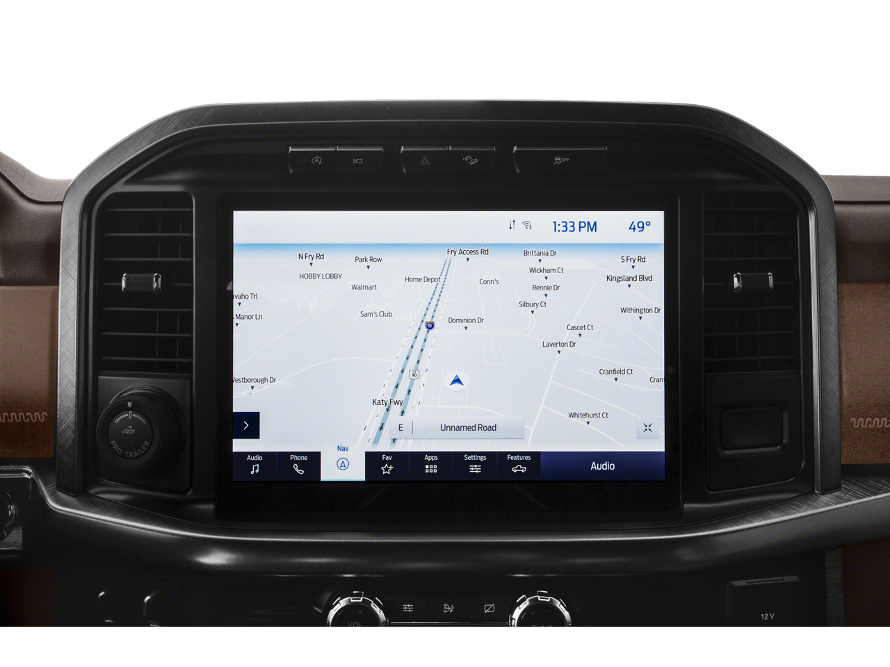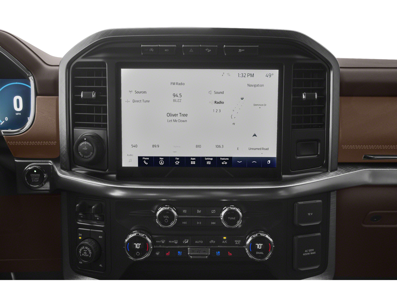 This 2023 Star White Metallic Tri-Coat Ford F-150 King Ranch 4WD is well equipped and includes these features and benefits: Bed Utility Package (BoxLink, LED Box Lighting, Power Tailgate, and Tailgate Step w/Tailgate Work Surface), Equipment Group 601A High (Power-Deployable Running Boards and Radio: B&O Unleashed Sound System by Bang & Olufsen), FX4 Off-Road Package (4x4 FX4 Off-Road Bodyside Decal, Hill Descent Control, Monotube Rear Shocks, Off-Road Tuned Front Shock Absorbers, Rock Crawl Mode, and Tray Style Floor Liner), King Ranch Chrome Appearance Package (Bright Belt Moldings, Chrome Door Handles w/Body-Color Strap, Chrome Skull Caps on Exterior Mirrors, and Wheels: 20 Chrome-Like PVD), Max Trailer Tow Package (Class IV Trailer Hitch Receiver, Extended Range 36 Gallon Fuel Tank, Integrated Trailer Brake Controller, and Pro Trailer Backup Assist & Pro Trailer Hitch Assist), Ford Gold Certified Certified, 4WD, 20 Machined-Aluminum Wheels, 360 Degree Camera, 4-Wheel Disc Brakes, 8 Speakers, ABS brakes, Adjustable pedals, Air Conditioning, Alloy wheels, AM/FM radio: SiriusXM with 360L, Auto High-beam Headlights, Auto tilt-away steering wheel, Auto-dimming door mirrors, Auto-dimming Rear-View mirror, Automatic temperature control, Brake assist, Center High-Mounted Stop Lamp CHMSL Camera Removal, Compass, Delay-off headlights, Driver door bin, Driver vanity mirror, Dual front impact airbags, Dual front side impact airbags, Electronic Stability Control, Emergency communication system: SYNC 4 911 Assist, Exterior Parking Camera Rear, Front anti-roll bar, Front Bucket Seats, Front Center Armrest, Front dual zone A/C, Front fog lights, Front reading lights, Front wheel independent suspension, Fully automatic headlights, Garage door transmitter, Genuine wood console insert, Genuine wood dashboard insert, Genuine wood door panel insert, Heated door mirrors, Heated front seats, Heated rear seats, Heated steering wheel, Illuminated entry, Inclination/Intrusion Sensor Removal, King Ranch Leather Bucket Seats, LED Sideview Mirror Spotlights, Low tire pressure warning, Memory seat, Multicontour Seats w/Active Motion Removal, Occupant sensing airbag, Outside temperature display, Overhead airbag, Overhead console, Panic alarm, Passenger door bin, Passenger vanity mirror, Pedal memory, Power door mirrors, Power driver seat, Power passenger seat, Power steering, Power windows, Pro Power Onboard - 2KW, Radio data system, Radio: B&O Sound System by Bang & Olufsen, Rain sensing wipers, Rear reading lights, Rear seat center armrest, Rear step bumper, Rear window defroster, Remote keyless entry, Security system, Speed control, Speed-sensing steering, Split folding rear seat, Steering Wheel Heat Removal (DISC), Steering wheel memory, Steering wheel mounted audio controls, SYNC 4 w/Enhanced Voice Recognition, Tachometer, Telescoping steering wheel, Tilt steering wheel, Traction control, Trip computer, Turn signal indicator mirrors, Twin Panel Moonroof, Variably intermittent wipers, Ventilated front seats, and Voltmeter.